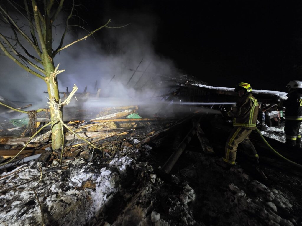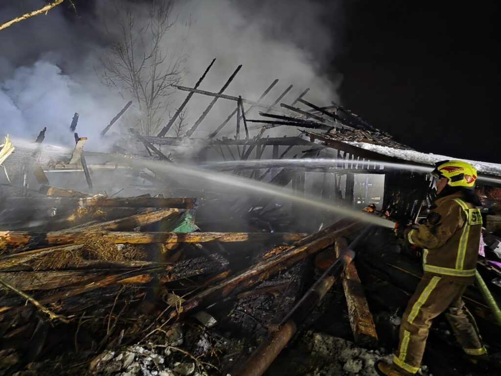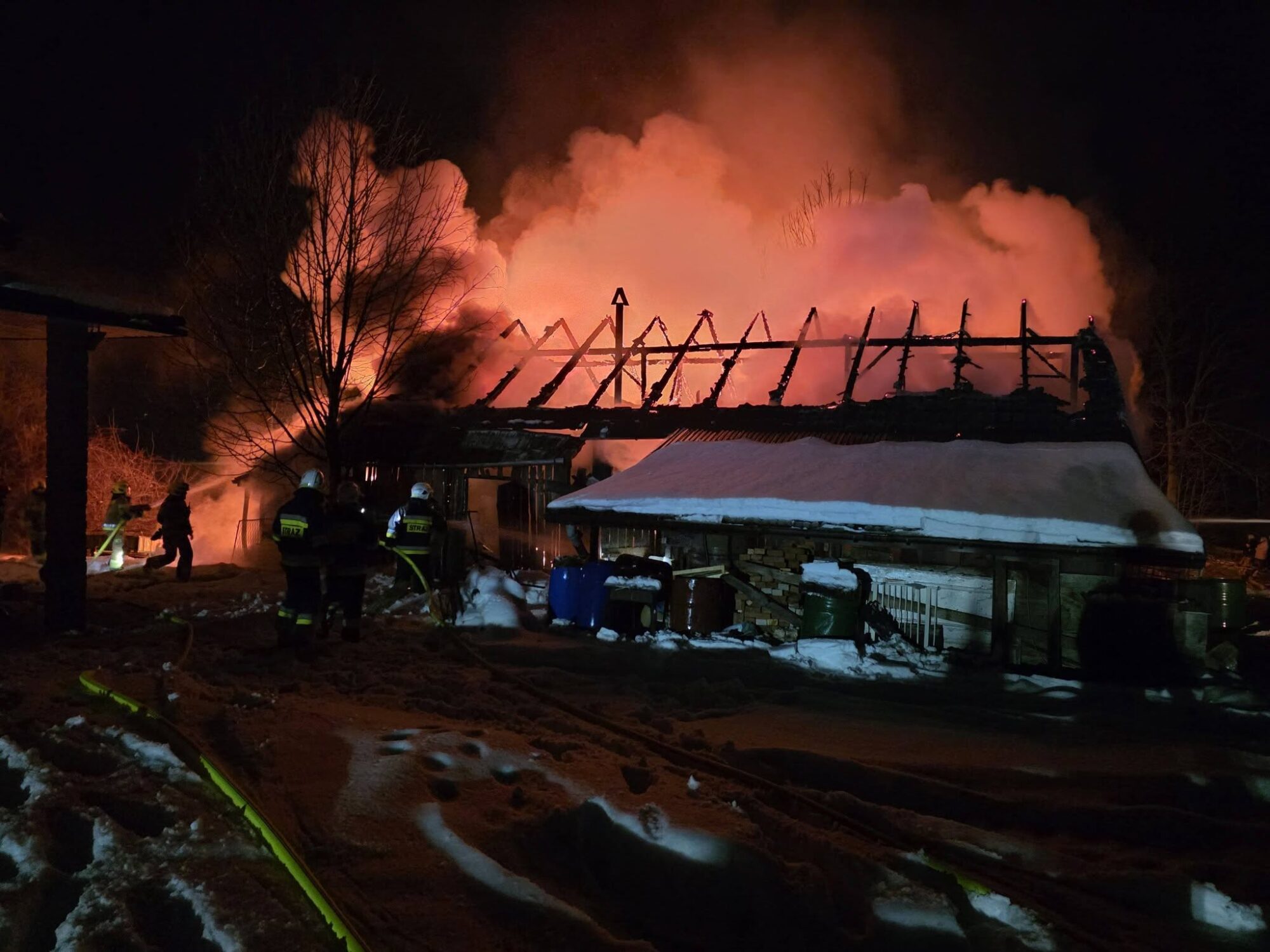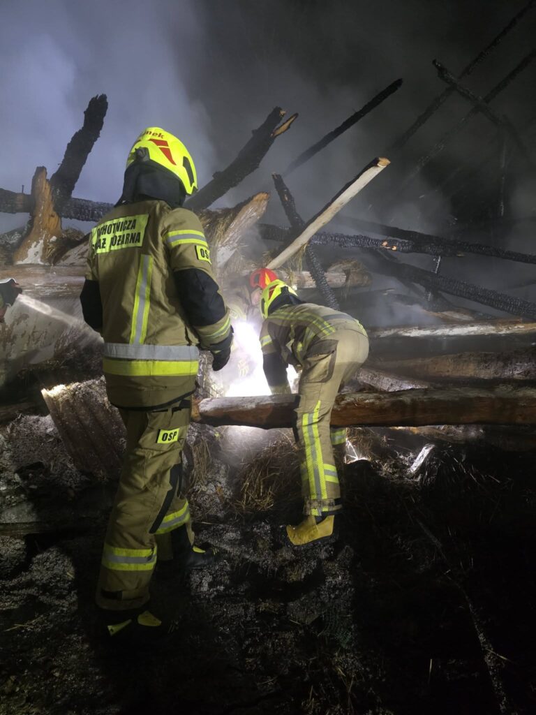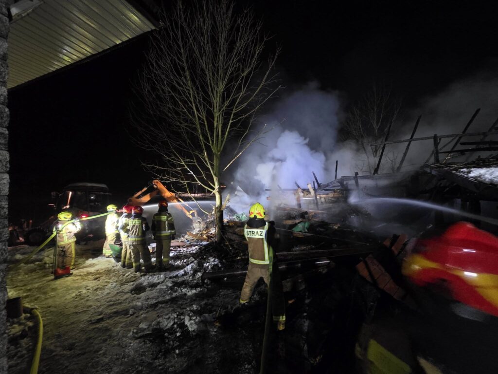 W dniu 15.01.2026 o godzinie 19:50 zostaliśmy zadysponowani do pożaru budynku gospodarczego w miejscowości Lipinki. Po przyjeździe na miejsce zdarzenia budynek był cały w ogniu. Pomimo ogromu strat, podczas prac rozbiórkowych strażacy odnaleźli kilka żywych zwierząt.